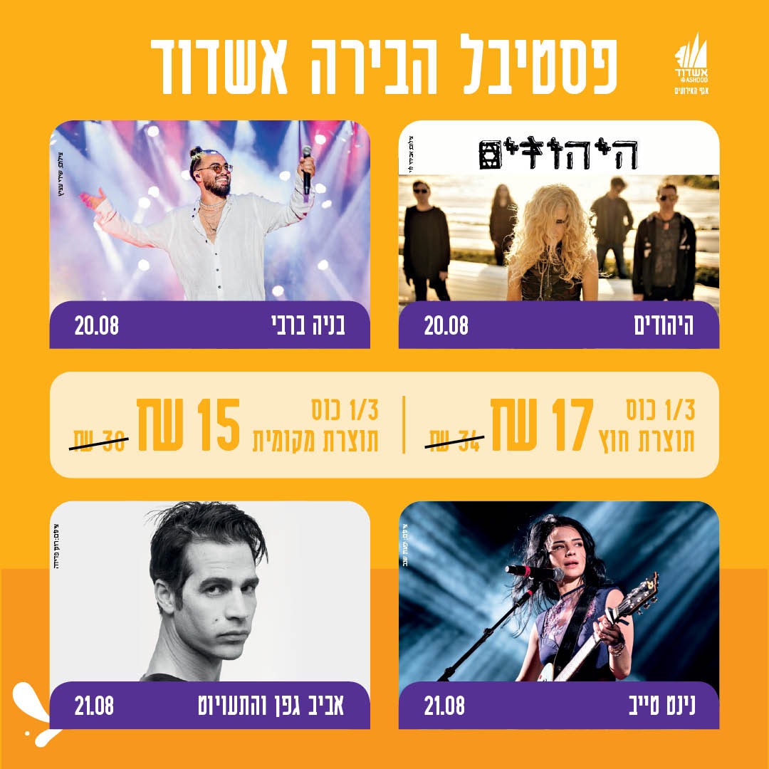 אשדוד מתכוננת לפסטיבל הבירה השנתי שלה, שיתקיים ב-20-21 באוגוסט בחוף הצעירים בעיר. בעוד שערים רבות מסתפקות בסיסמאות, אשדוד מוכיחה פעם נוספת כי היא "עיר הבירה של ישראל", ומציעה לתושבים ולמבקרים חוויה קולינרית-מוזיקלית במחירים נגישים. הפסטיבל יכלול הופעות חיות של מיטב אמני ישראל לצד מגוון רחב של בירות במחירים חסרי תקדים.