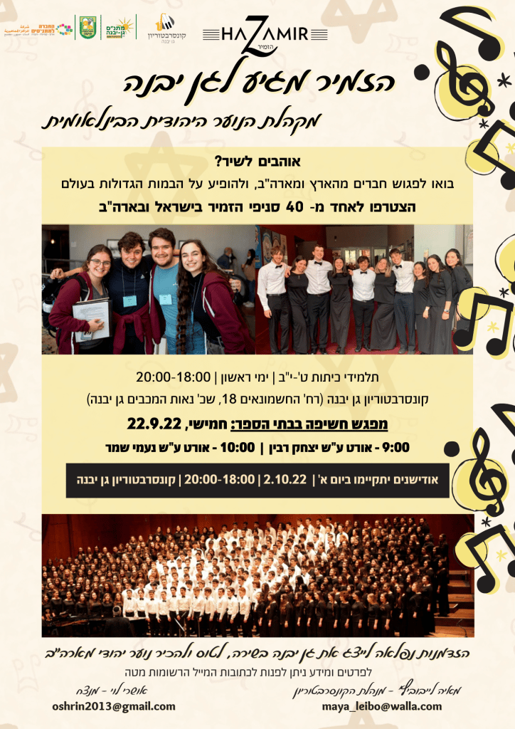 האודישנים יתקיימו ביום ראשון, ה- 2/10/22 בקונסרבטוריון גן יבנה