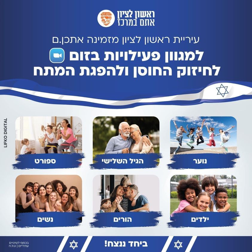 עיריית ראשון לציון מזמינה אתכן.ם להצטרף למגוון פעילויות לחיזוק החוסן ולהפגת המתח שיתקיימו היום, יום שני 11.12