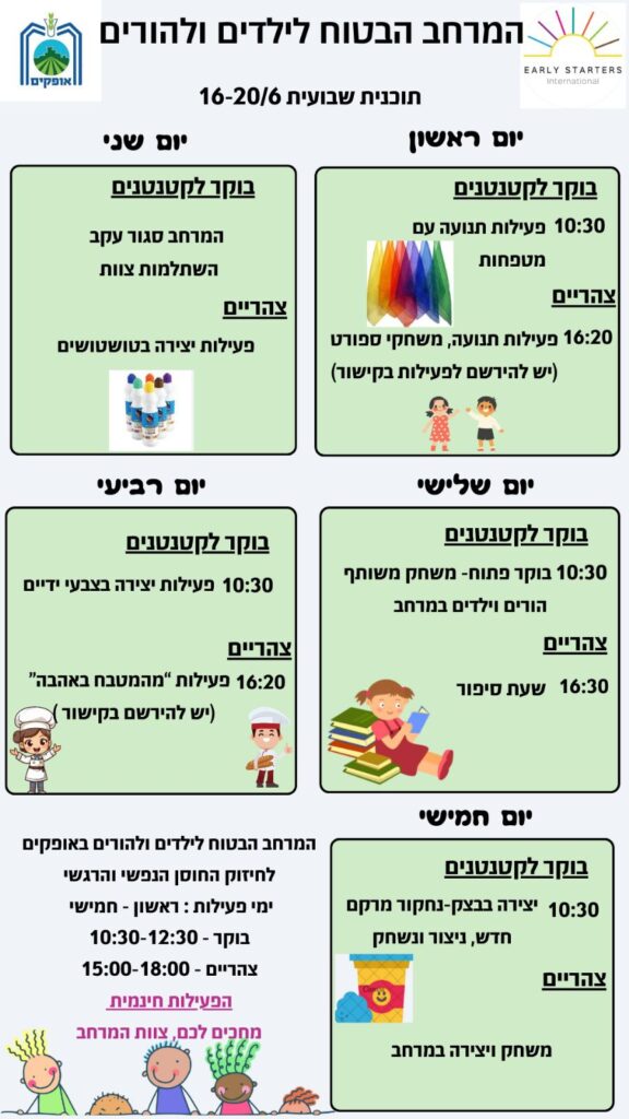 לפעילות תנועה שיתקיימו היום ולפעילות "מהמטבח באהבה" ביום רביעי, בשעות הצהריים, יש להירשם בלחיצה על הקישור.
