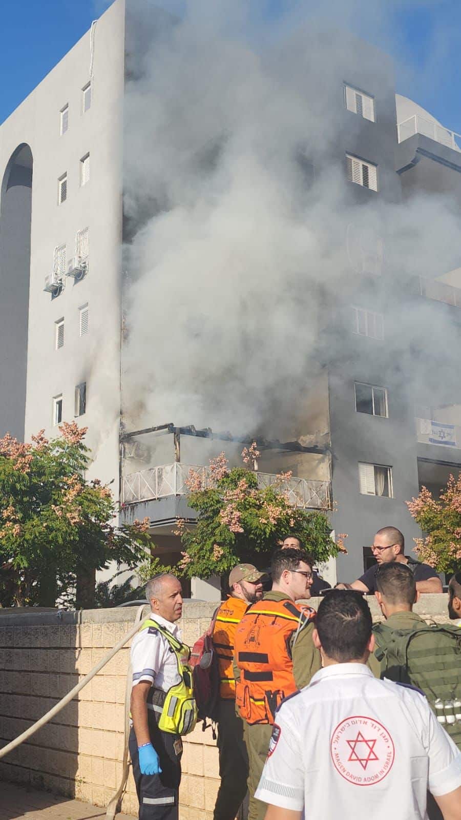 לוחמי האש ממשיכים בסריקה אחר לכודים וכיבוי השריפה.