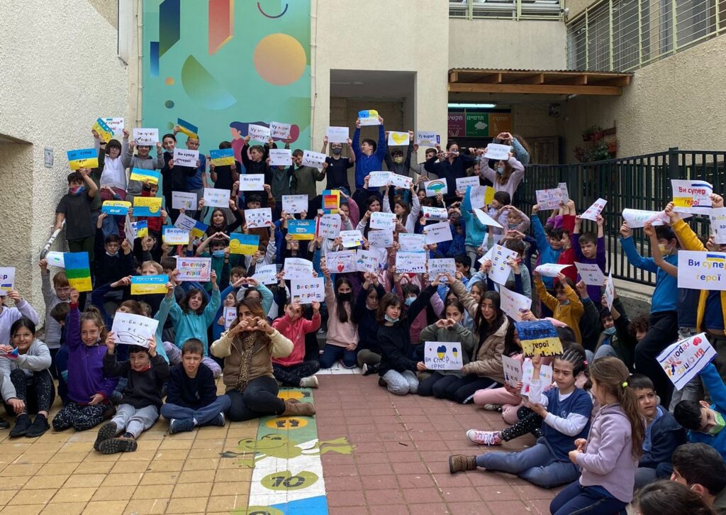 כבר בראשית המלחמה, צוות ביה"ס החליט לרכז תשומת לב מיוחדת למצב, ונתן מעטפת רגשית לתלמידים שחווים את המלחמה הרחוקה מקרוב. ביוזמה משותפת עם הנהגת ההורים, עלה הרעיון לשלוח מסר של חברות, אחווה, סולידריות ותקווה לילדים באוקראינה. תלמידת כיתה ג2, ליה אוסוב, יצרה מצגת שאותה היא העבירה בין הכיתות והסבירה לתלמידים על המלחמה המתנהלת והיוותה בסיס לשיחות על הנושא עם המחנכות ובליווי יועצת ביה"ס ענת ויתקון-קורון. בהמשך לכך, בשיעורי אומנות עם המורה עירית זמיר, התלמידים דיברו על מצב הילדים באוקראינה ויצרו כרזות באוקראינית ובהן משפטים של תמיכה וחיזוק: "יש לכם חברים כאן", "אתם גיבורי על", "אנחנו חושבים עליכם", "אנחנו מחבקים אתכם" ו"כולנו ילדים ואנחנו מבקשים שלום". לסיכום הפרויקט הילדים הצטלמו עם הכרזות לסרטון מרגש שנשלח, בעזרת הורים מביה"ס, לילדים שעדיין נמצאים באוקראינה ולכאלה שבשל המלחמה נאלצו לברוח מבתיהם. מבית הספר נמסר: "תודה לכל השותפים שלנו – למפקחת ויקי עזיאל ולאגף החינוך בעיריית רחובות על התמיכה – לזוהר בלום מ"מ רה"ע ומחזיק תיק החינוך, לאפרת צוקרמן, מנהלת אגף החינוך, לשרה והב, מנהלת מח' חינוך יסודי, לאלכס לשצ'ינסקי מתוכנית אפיקי תקשורת של קרן קרב, שצילם וערך את הסרטון במסגרת השיעורים בביה"ס, להורים שעזרו בתרגום ובהכנה ולכל מי שלקחו חלק בהפקה".