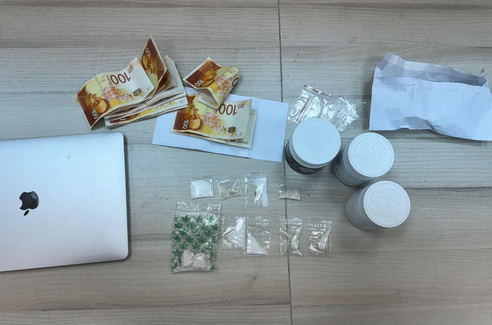 במסגרת הפשיטות שנערכו, איתרו ותפסו הכוחות חומרים החשודים כסם מסוג קנאביס במשקל 185 גרם, דוקטור במשקל 48 גרם, 22 כדורים מסוג אקסטה, 30 גרם נוזל. בנוסף נתפס כסף מזומן על סך 18,500 ש"ח, משקלים, מחשב נייד וקטנוע.