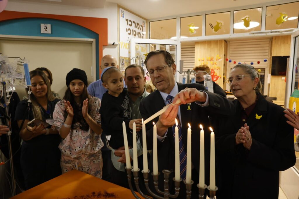 נשיא המדינה יצחק הרצוג, הגיע הערב, יום ראשון, א׳ טבת, 21 בדצמבר, למרכז שניידר לרפואת ילדים, והדליק נר שמיני של חנוכה יחד.