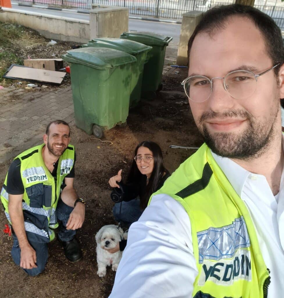 ברוך מספר: "יצאתי לקניות בעיר ותוך כדי שאני מחפש חנייה התקבלה הקריאה. יצאתי בזריזות לסייע, כשאליי מצטרף שבתאי. בכוחות משותפים ובזריזות חילצנו את הכלבה בשלום, לשמחת בעליה. לאחר החילוץ, סיפרה לנו בעלת הכלבה שהיא הניחה את מפתחות הרכב במושב, ובחוסר שימת לב הכלבה לחצה על כפתור הנעילה."