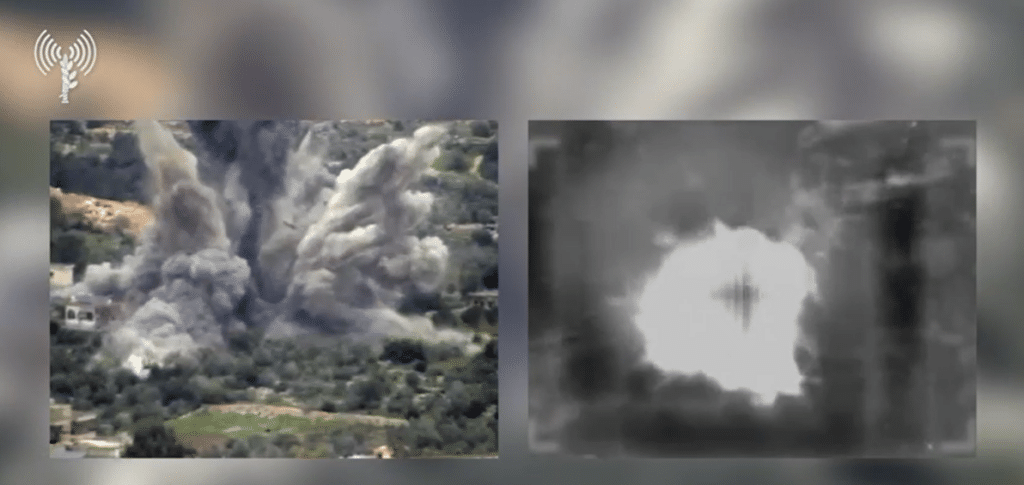 מטוסי קרב תקפו לפני זמן קצר מספר מבנים צבאיים של ארגון הטרור חיזבאללה בהם פעלו מחבלי הארגון, עמדת תצפית ותשתיות נוספות של ארגון הטרור חיזבאללה במרחב הכפרים חולא, קלעת דבה, יארון, מיס אל ג׳בל, יארין ושיחין שבדרום לבנון.