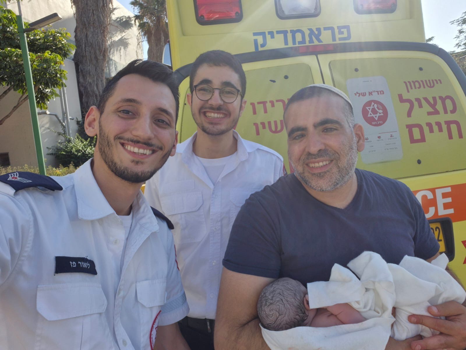 תוך רגעים ספורים, בתוך ניידת הטיפול הנמרץ, הגיח לאוויר העולם תינוק בריא, שלם וחמוד. "כבר בדרך לקריאה נערכנו והכנו את הניידת לקבלת לידה, חיממנו אותה וכבר פרסנו את הציוד" מספר חובש רפואת חירום במד"א ליאור פז, "הייתה התרגשות גדולה מאוד, לא בכל יום אני זוכה ליילד תינוק. אחרי שבועיים מאוד מאומצים של טיפול בזירות נפילת טילים במסגרת מבצע 'עם כלביא', זה מאוד מרגש לחזור לשגרה ולעזור בהבאת חיים חדשים לעולם". עוד מוסיפה לדבריו פראמדיקית מד"א ליהי גולן, "עצרנו בצד הדרך ונולד בן מתוק. זה היה מאוד מרגש. זה תמיד מרגש לקחת חלק בלידה, ההורים היו מקסימים ואנחנו מאחלים להם הרבה מזל טוב".
