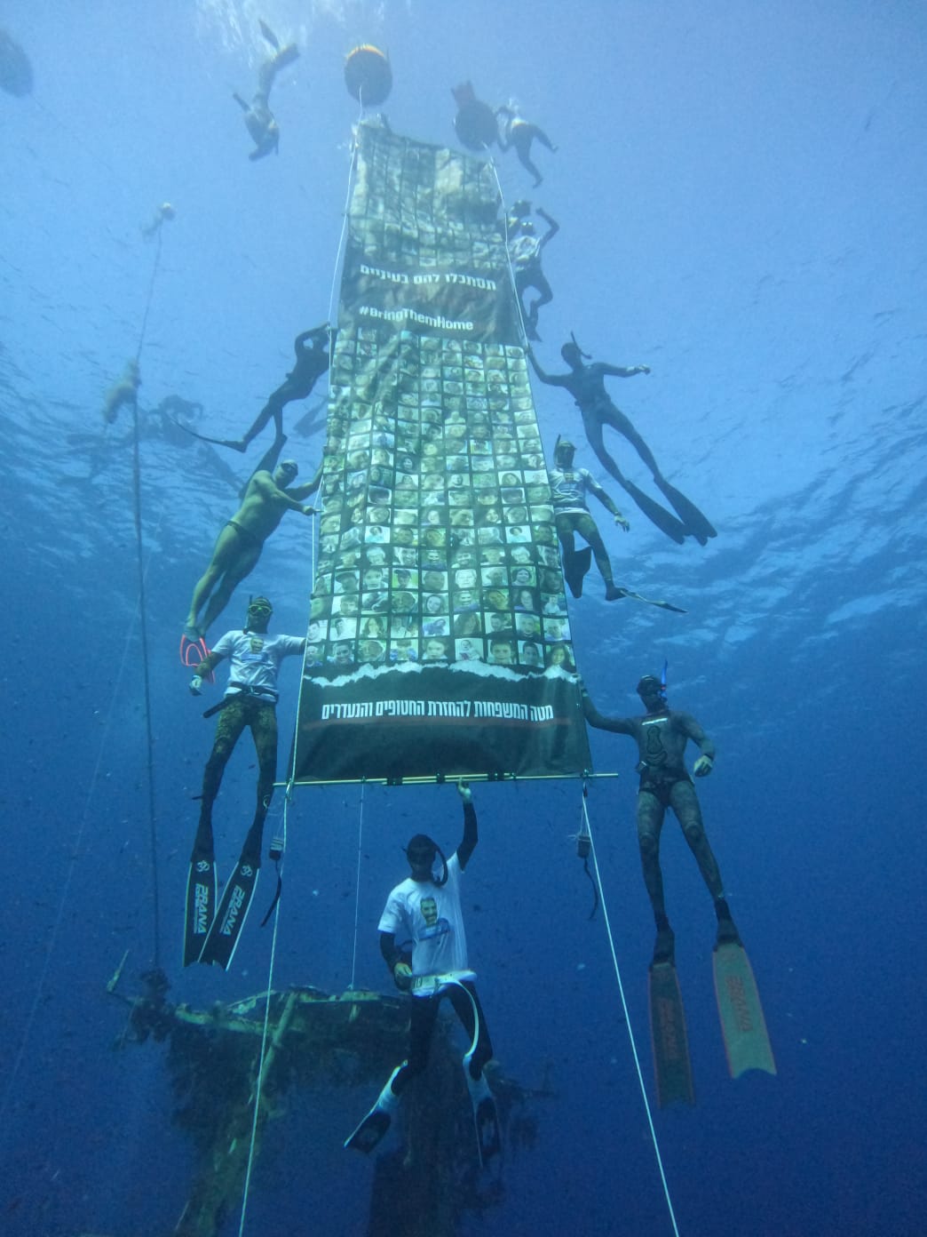 האירוע הקסום התרחש בחוף המזח, ברצועת החוף הדרומית של אילת: כ 100 צוללים עם שלט באורך 10 מטרים הנושא את תמונות החטופים, בקריאה להחזרתם גם ממעמקי הים. אליהם הצטרפו כ 100 איש נוספים על החוף ובתוך המים, חלקם בצלילה, חלקם בשנירקול, חלקם בשחיה אבל כולם במסר אחד, להחזיר את כולם עכשיו!