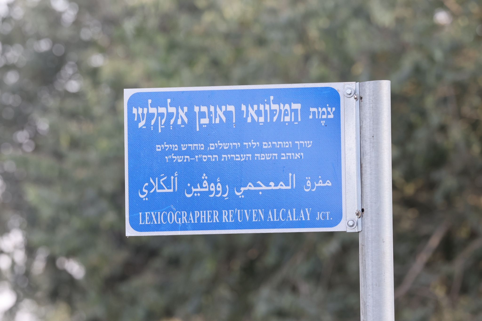 ראש העיר ירושלים, משה ליאון, חנך אתמול (א', 10/08) צומת חדש על שם ראובן אלקלעי ז"ל – לשונאי, מילונאי, מתרגם ועורך עברי בולט, שנמנה עם הדור השני של מחדשי השפה העברית במאה ה-20