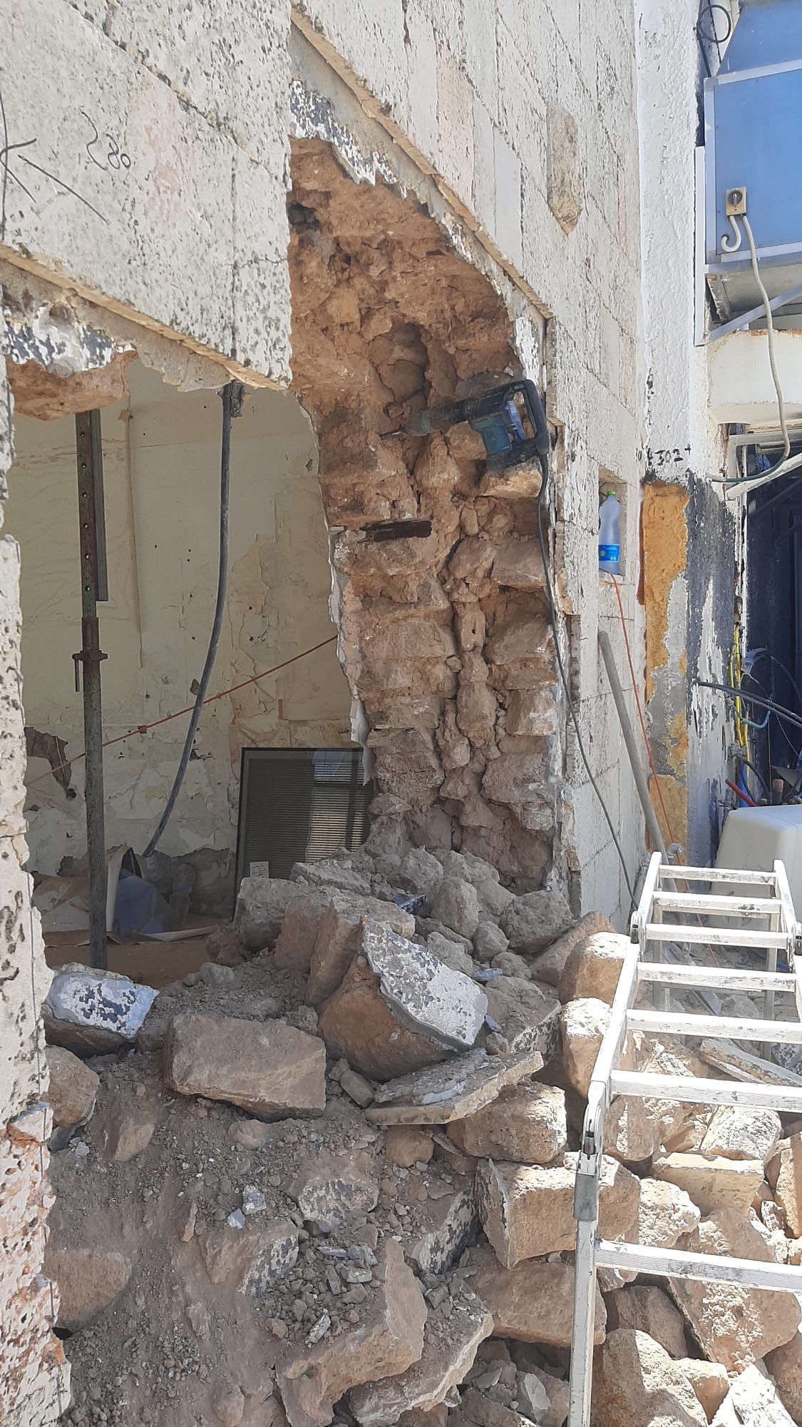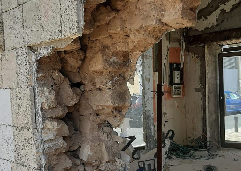 בעקבות העבודות שבוצעו בניגוד לחוק, קרס חלק מהקיר ונפער בו חור.