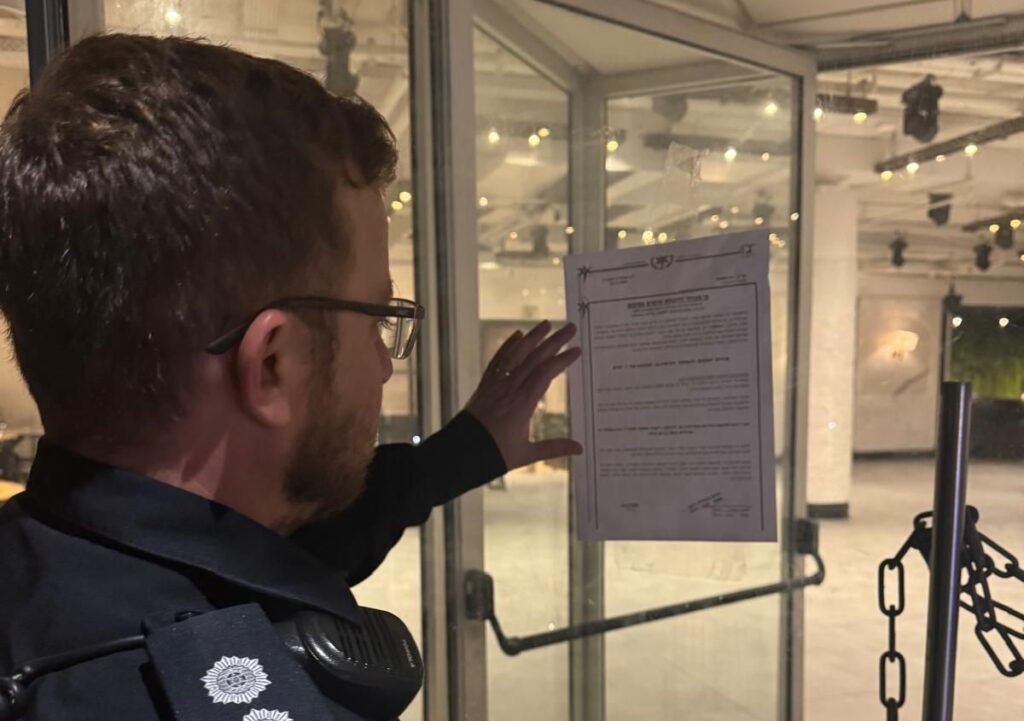 מפקד המחוז הדרומי, ניצב חיים בובליל, חתם אתמול על צו סגירה והפסקת הפעילות באולם האירועים ׳דולוס׳ בעיר אשקלון, לתקופה של 7 ימים, וזאת לאחר שנעצרו במקום שוהים בלתי חוקיים שהועסקו ולנו ללא אישורים כדין.