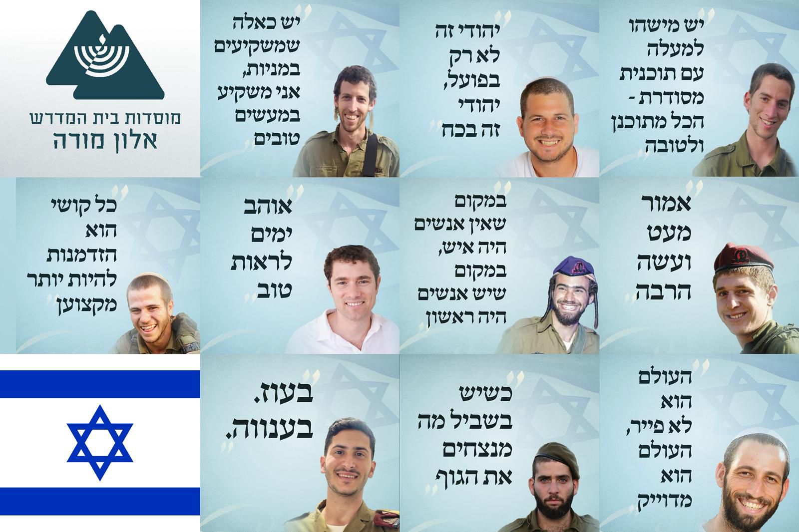 מנכ"ל מוסדות אלון מורה, אליסף פרשן, מסר: “ביום זה אנו זוכרים את תלמידינו ובוגרינו הגיבורים שנפלו בעת שעמדו על משמר ארצנו למען עם ישראל. מתוך עולם התורה והרוח הם יצאו לקרב בגבורה ובאמונה שלמה בצדקת הדרך – והותירו לנו צוואה חיה לחיות לאורה. יהי זכרם ברוך”.