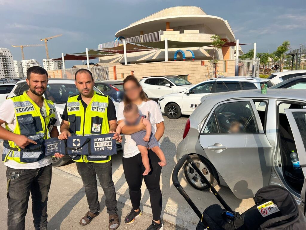 אביה וחניש ואופיר אמסלם, מתנדבי הסניף המקומי, נענו לקריאה והגיעו במהירות למקום. באמצעות הציוד הייעודי שברשותם, חילצו המתנדבים את הפעוט בשלום ובזריזות, מבלי לגרום נזק לרכב.