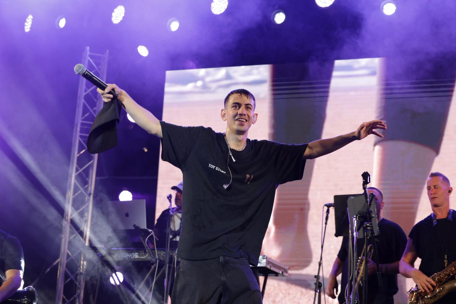 אבל זה לא הכול כי הרגע המרגש של המופע היה כששאולוב התעטף בדגל של סמ"ר עמית פרידמן ז"ל, תושב אור יהודה שנפל לפני קצת פחות משנה. "כולנו נמחא לעמית כפיים", ציין שאולוב. "הוא גדל והתחנך באור יהודה, וזו לא בושה להיות שמחים גם כשהוא לא כאן כי הוא עצמו אומר – 'אחי, כשאתה מחייך הכול נראה אחרת.' אז כולם יחייכו וימחאו כפיים לעמית פרידמן והשיר הזה בשבילו. עם ישראל חי!".