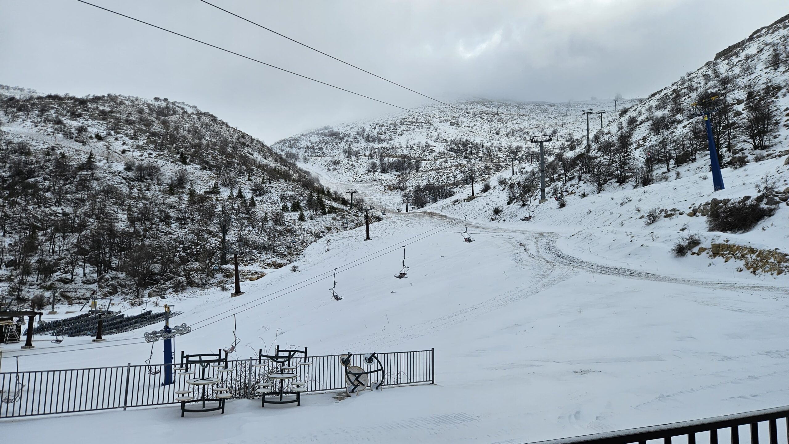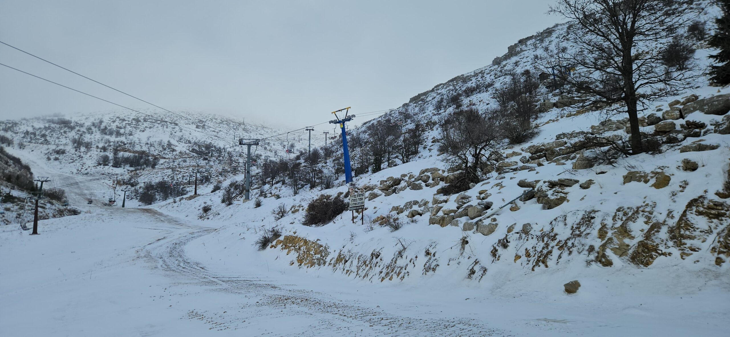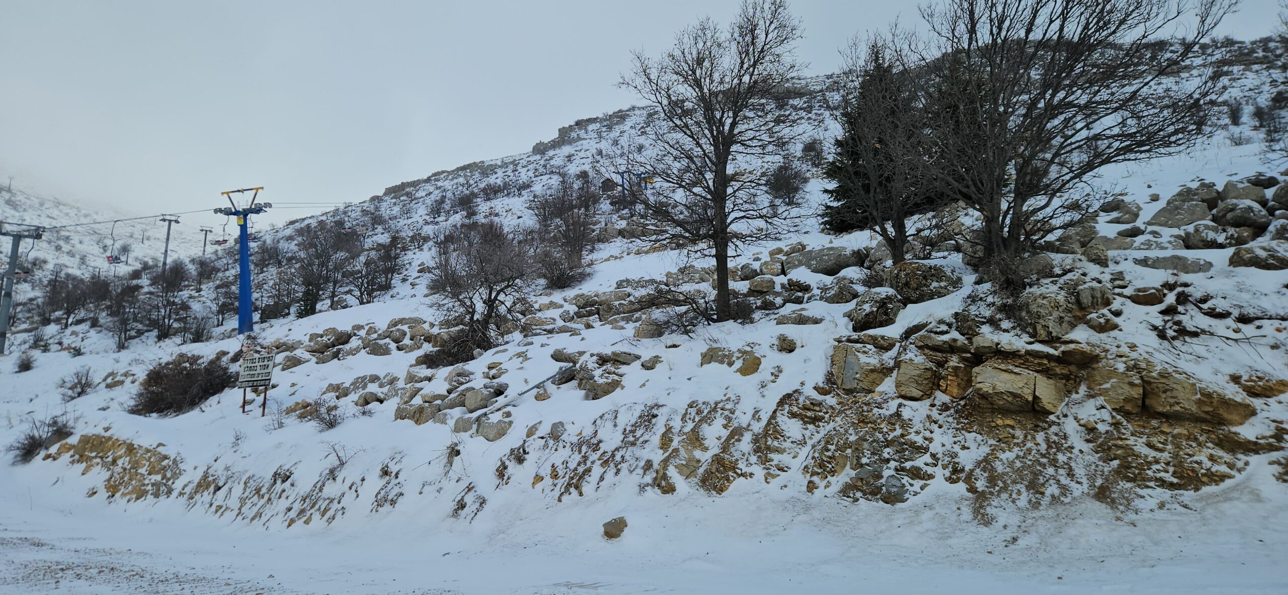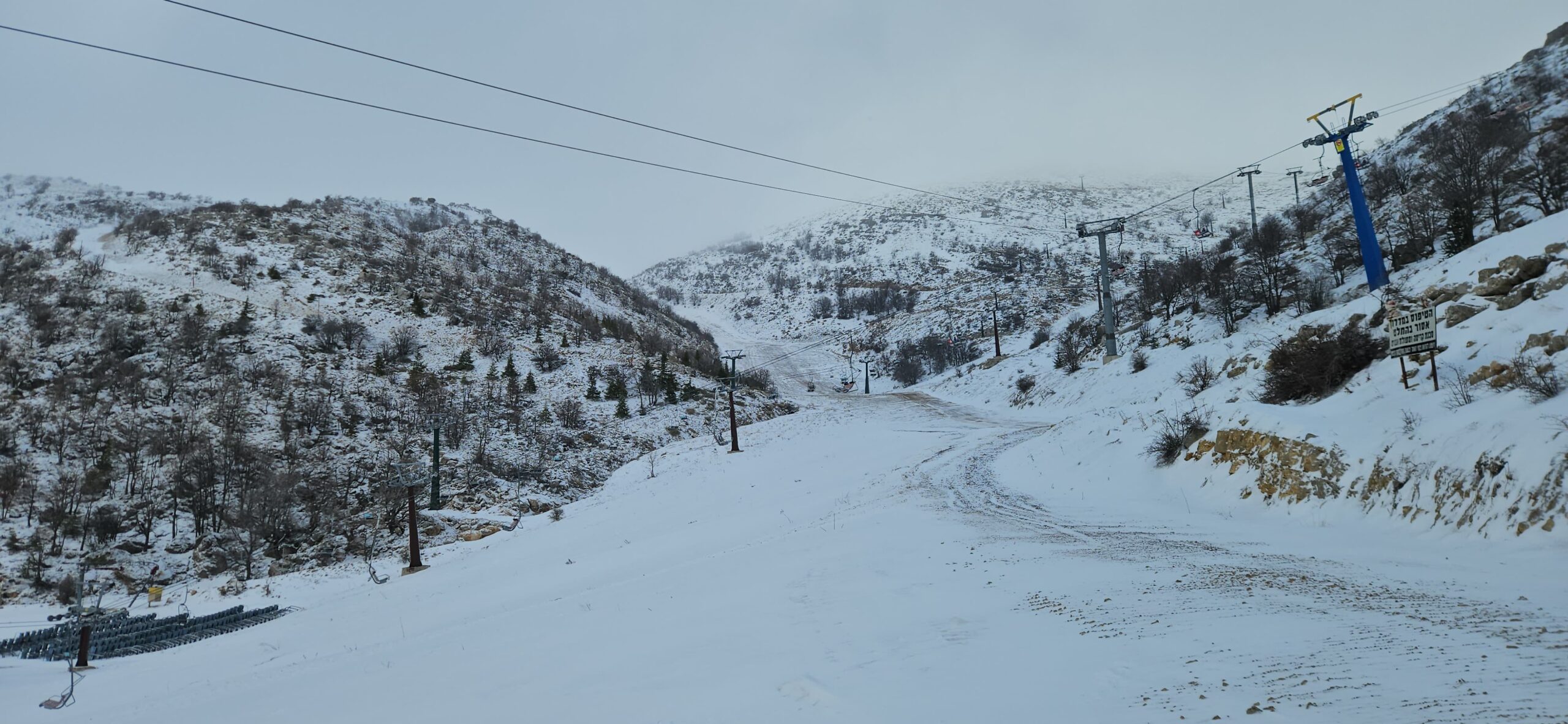 בוקר לבן וקפוא באתר החרמון, הטמפ' במפלס התחתון 5°- מעלות, רוח חזקה מנשבת כך שמרגיש הרבה יותר קר. גובה השלג במפלס התחתון כ-20 סמ'.