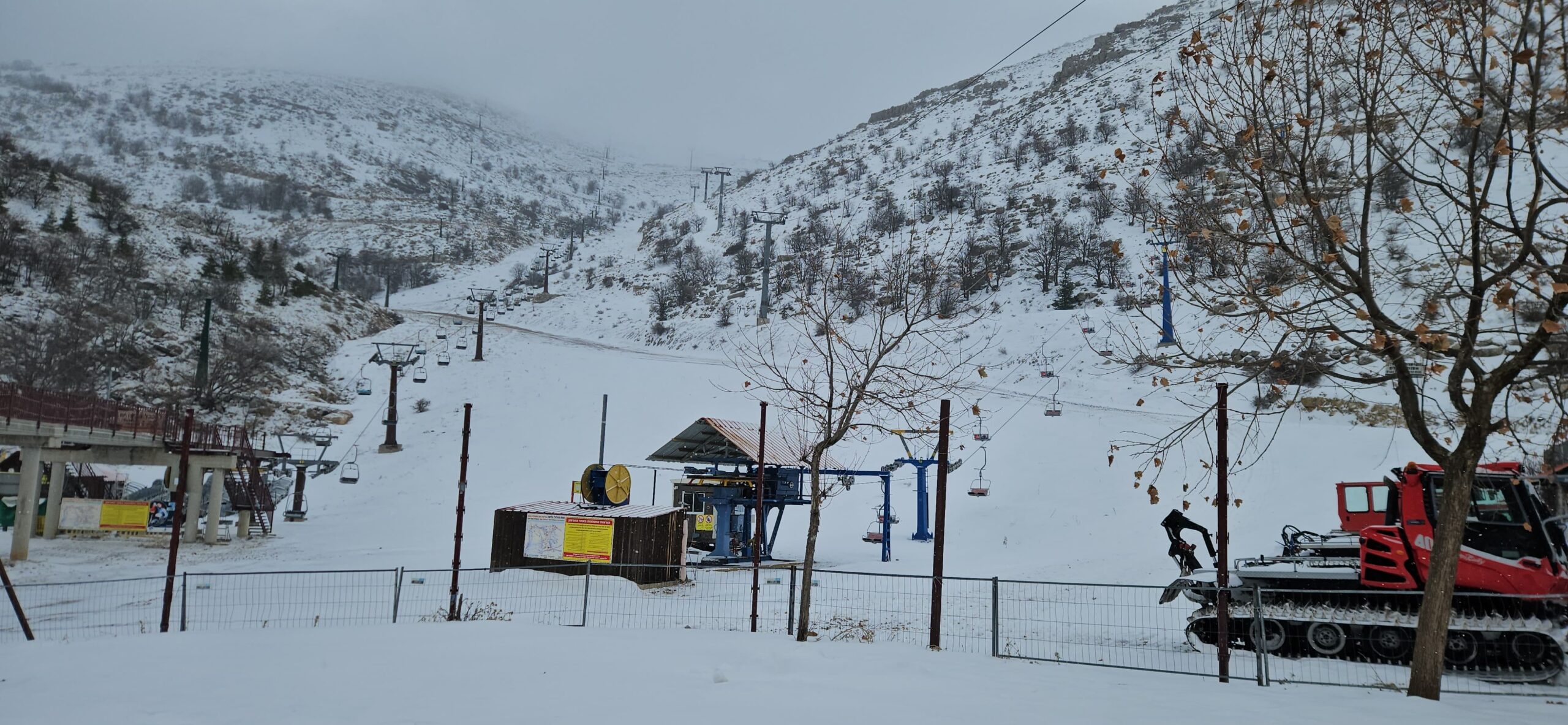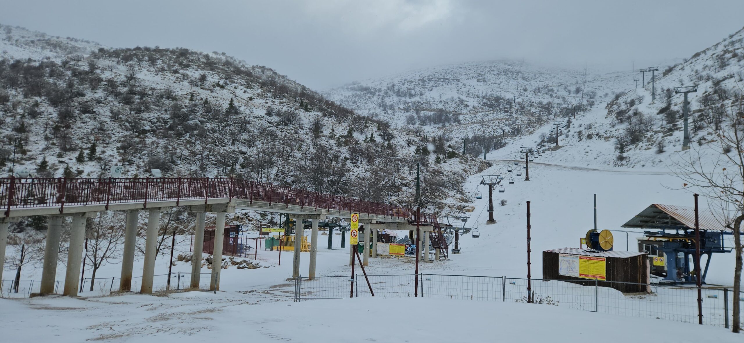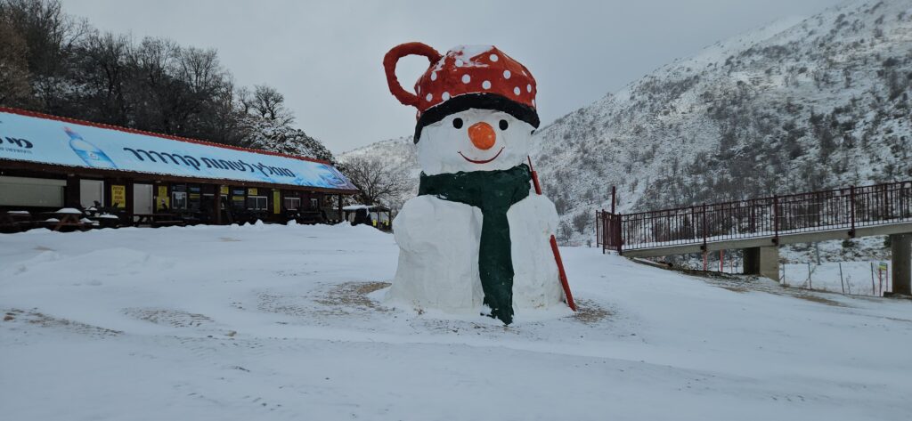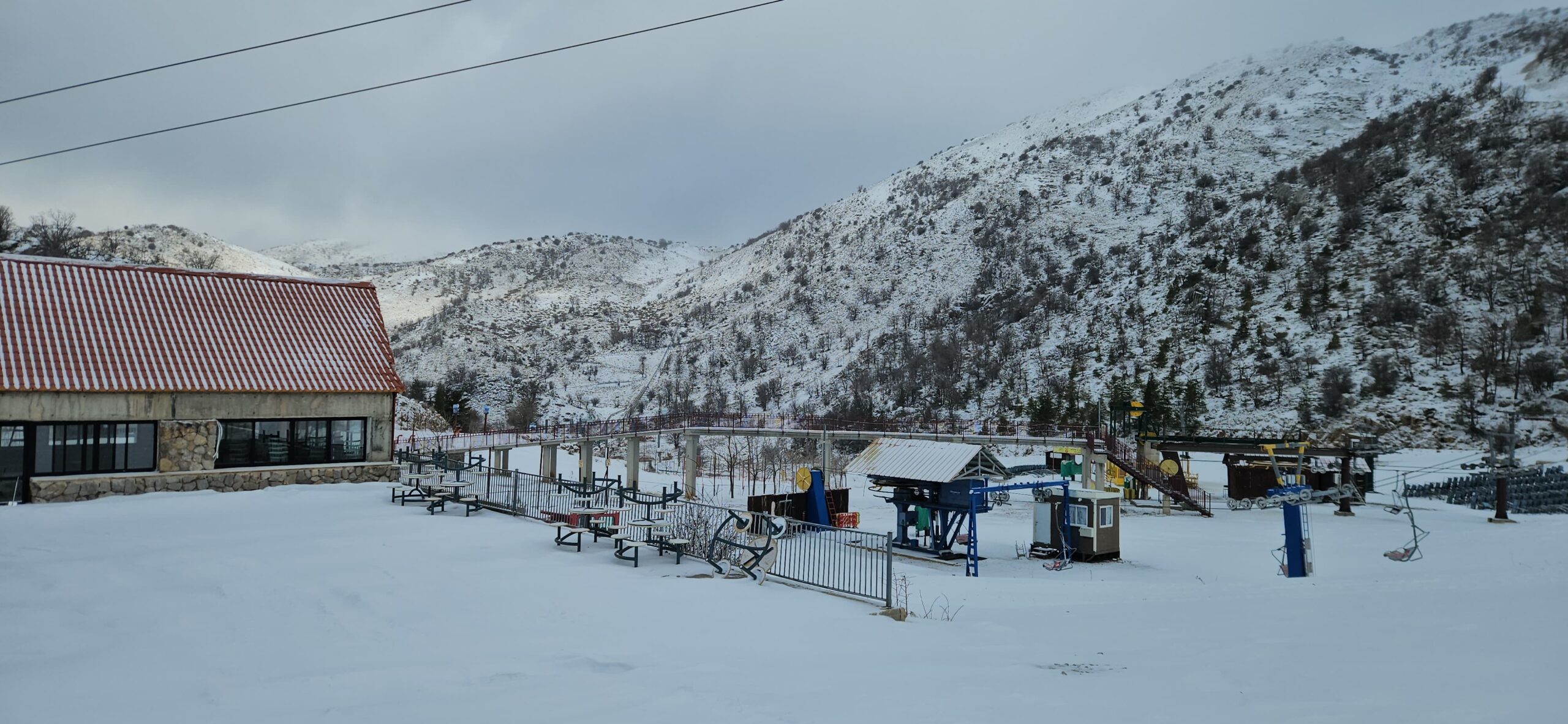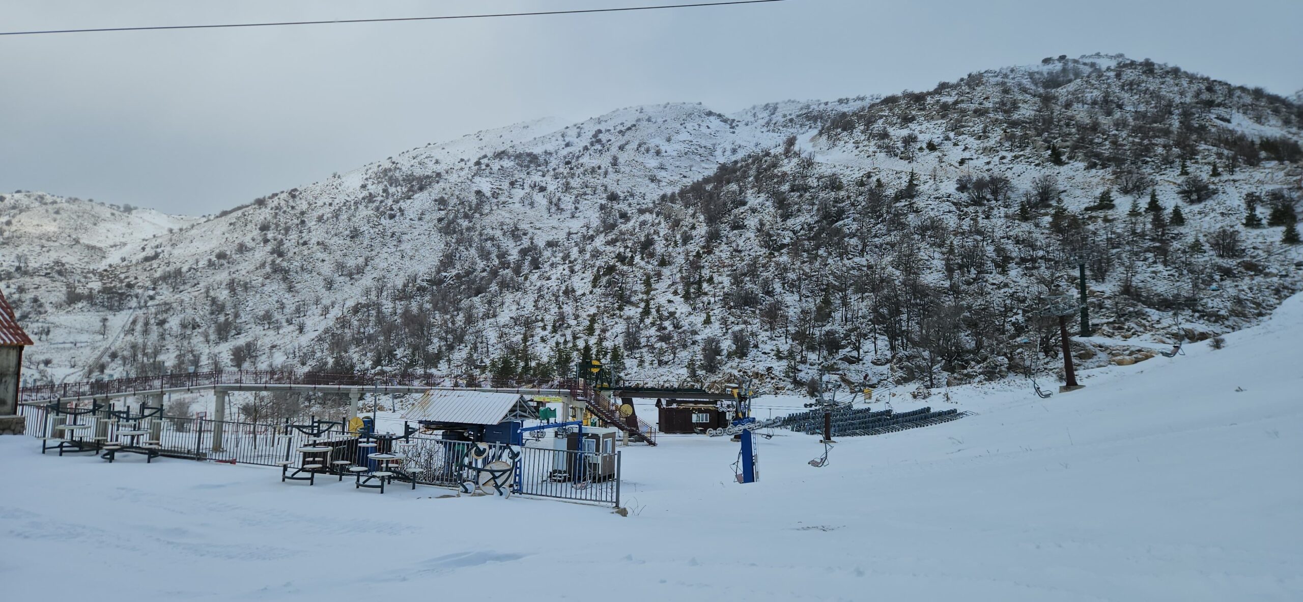 בוקר לבן וקפוא באתר החרמון, הטמפ' במפלס התחתון 5°- מעלות, רוח חזקה מנשבת כך שמרגיש הרבה יותר קר. גובה השלג במפלס התחתון כ-20 סמ'.