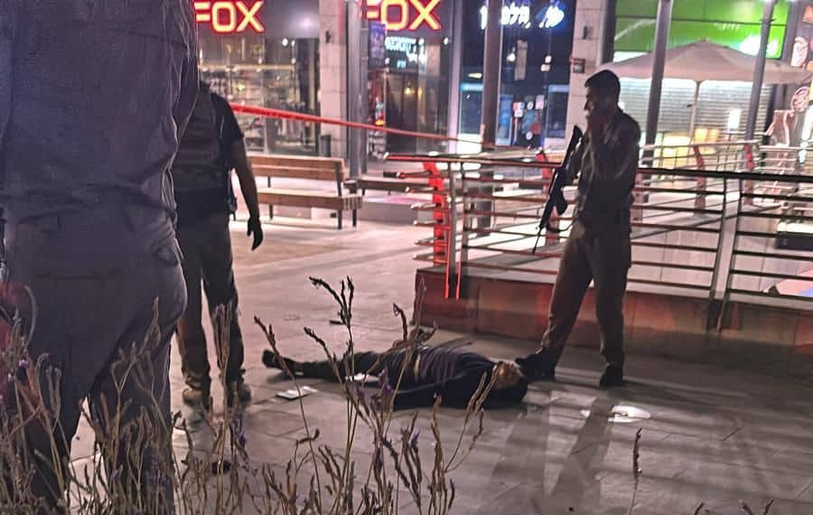 ככל הנראה מדובר בבן מיעוטים חמוש בסכין שהתקרב לעוברי אורח שיצאו מהקפה בקניון – והחל לדקור אותם.