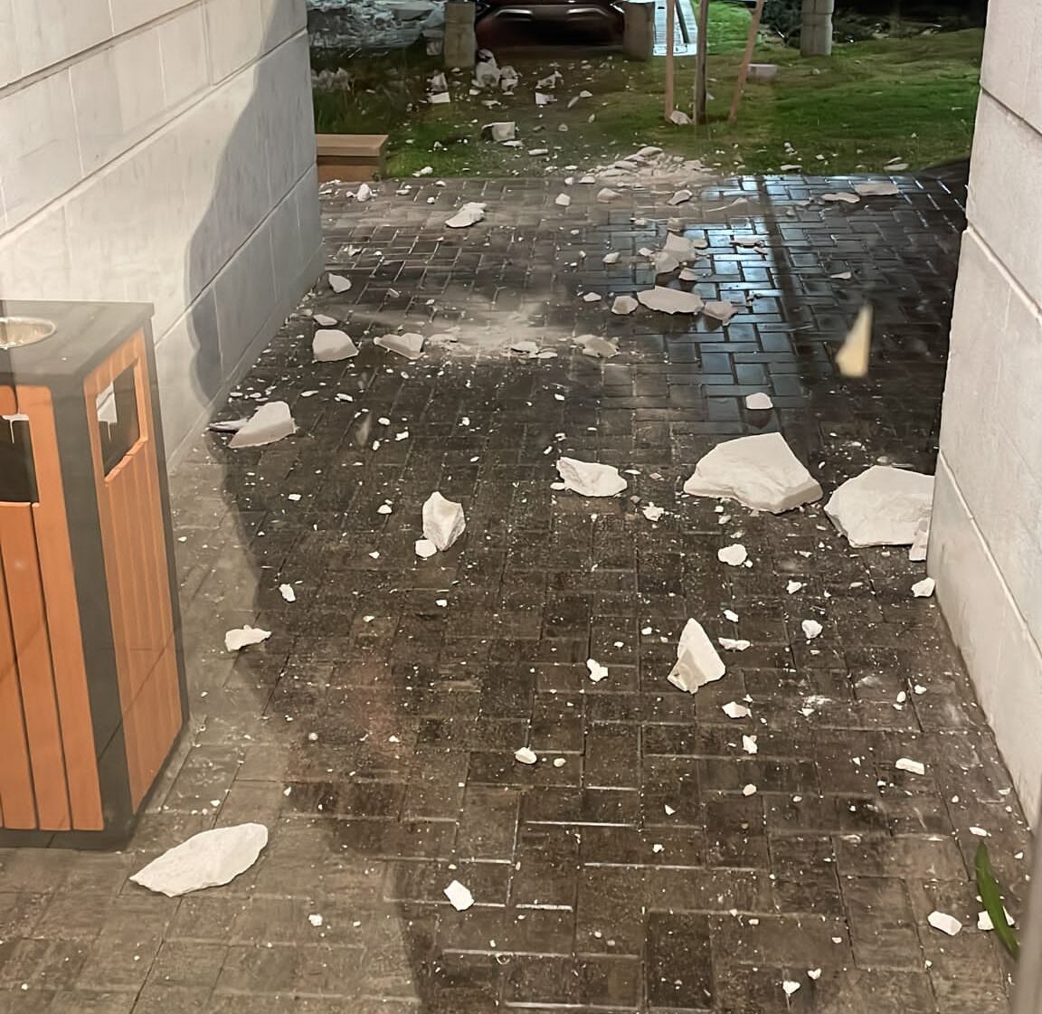 "הכל פה קרס", נאמר בסרטון, שצולם בשכונת צמרות. "חברים, להיזהר, שלא יפול לכם על הראש". ככל שידוע, מדובר בקיר שקרס מהקומה ה-19 בבניין. לבנים הציפו את החניה ורק במזל לא נפגעו הרכבים (ככל שידוע)