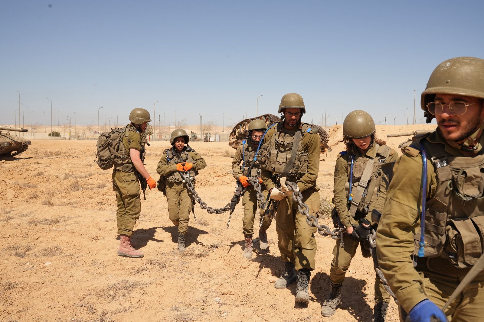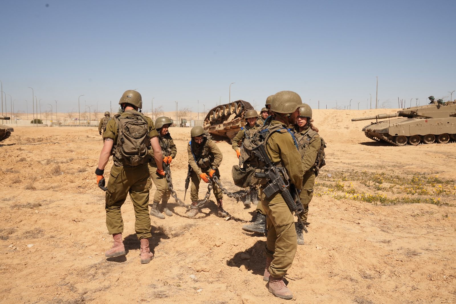 לאחר הערכת מצב מקיפה, הם ניגשים למלאכה ונעזרים בשרשראות ברזל ארוכות כדי לחבר בין צידי הטנק ההפוך לשני טנקים שהיו במקום. לאורך התרגיל, עליהם להתמגן מפני ירי תמ"ס ולסייע בפינוי פצועים.