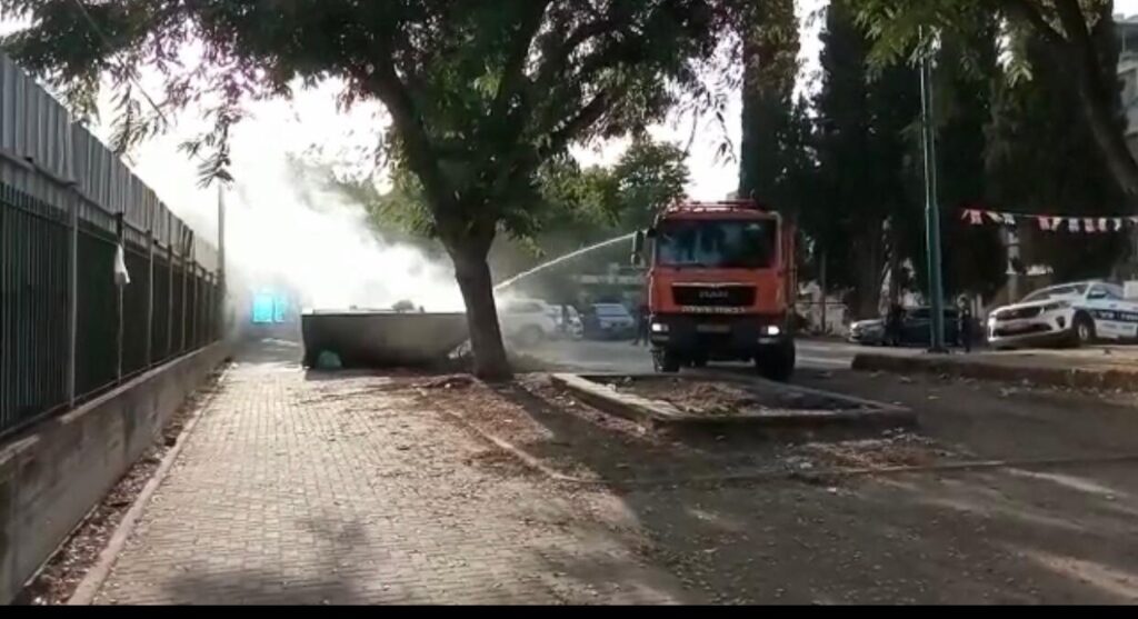 צפו: פורעים הציתו מכולת אשפה סמוך לגן ילדים ברמלה