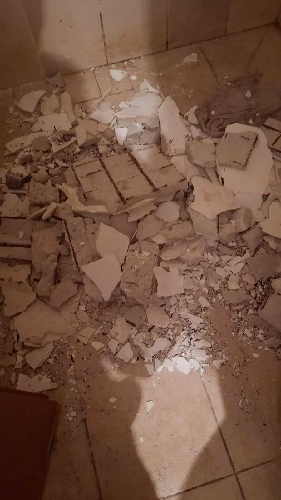 תקרת שירותים בדירה קרסה אתמול בלילה, לדיירים נאמר להתפנות מהבית ומאחר ולא היה להם לאן – אמרו להם להשאר בבית רק לא להתקרב לשירותים והמקלחת, כששאלו איפה יעשו צרכים נאמר להם: "תעשו בחוץ״, ו"תעשה מתחת לעץ", אחרי התערבות של כתב רדיו דרום באזור לכיש, אודי דוד בן דוד מול עיריית קריית גת ועמידר הם פונו למלון.