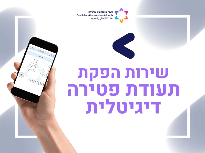 רשות האוכלוסין וההגירה מעמידה לרשותכם אפשרות קלה ומהירה להפקת תעודת פטירה דיגיטלית (להורים או לילדים) בקלות ובנוחות, ללא צורך בהגעה ללשכה.
