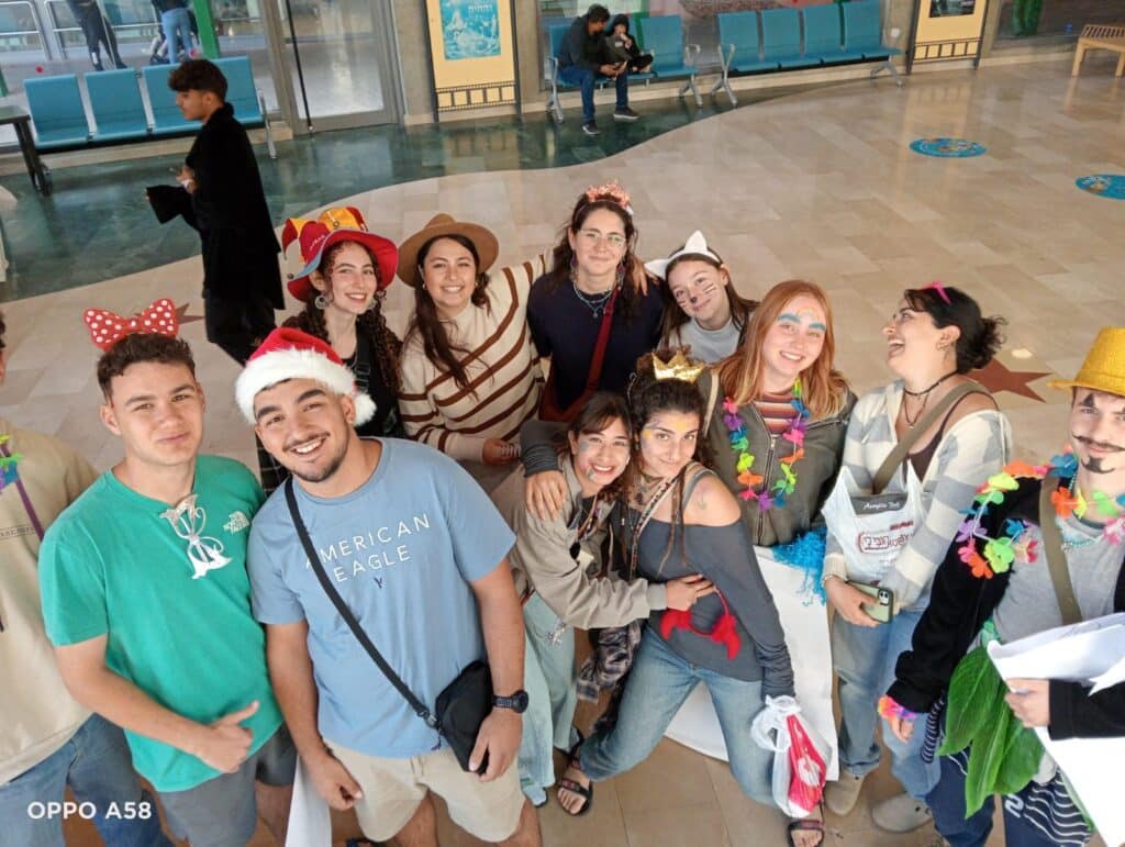 השינשינים שהתחפשו והתאפרו לכבוד האירוע, קישטו ושימחו את הילדים החולים ואת משפחותיהם בשירי חג הפורים המתקרב.