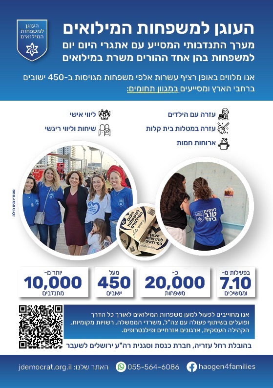 בדיוק בשביל זה הוקם ארגון 'העוגן למשפחות המילואים' ב-7.10.23, כדי לתמוך במשפחות המילואים שמתמודדות עם חזיתות יומיומיות – אמהות שמתקשות לבשל, לילדים בשיעורי הבית, טיולים עם הכלב, קיפול כביסה, קניות, סידורים ושאר ירקות.