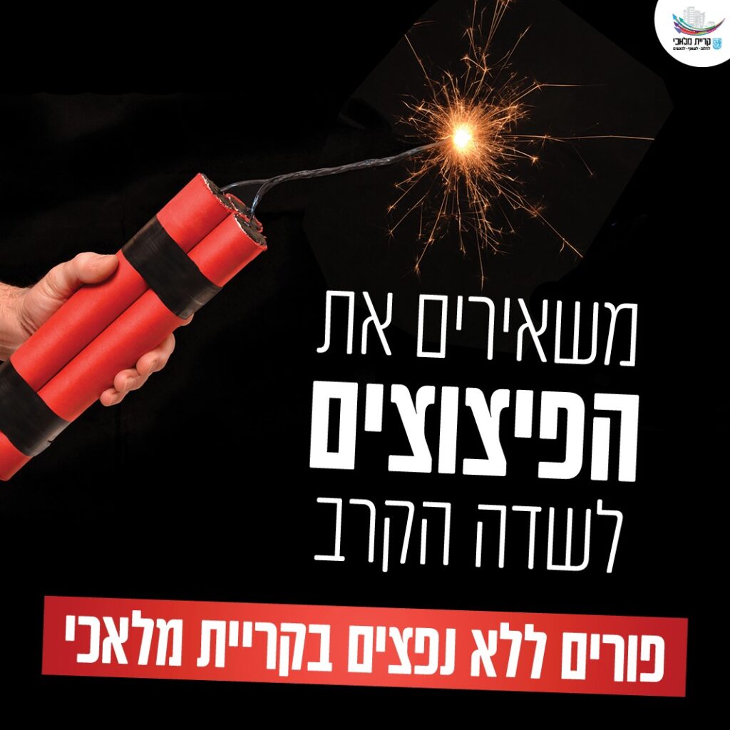 בשבועיים האחרונים מובילה קריית מלאכי קמפיין הסברה רחב היקף, תחת הסלוגן: "משאירים את הנפצים לשדה הקרב! פורים ללא נפצים בקריית מלאכי".