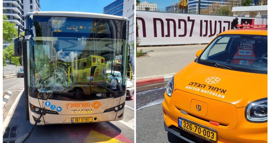 במוקד 101 של מד"א במרחב ירקון התקבל דיווח על הולך רגל שנפגע מאוטובוס בדרך לוי אשכול בקרית אונו.