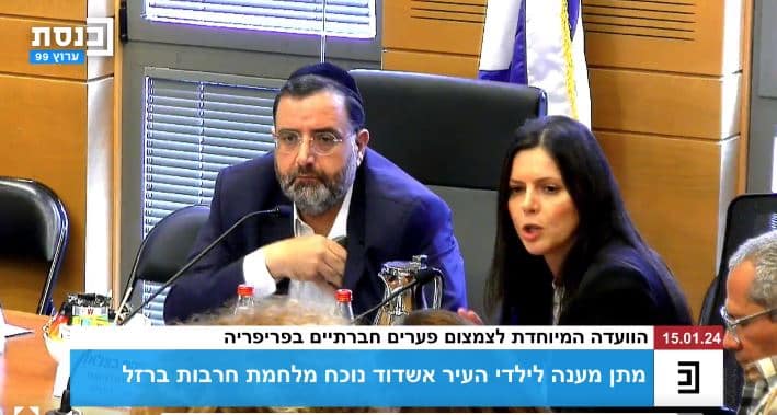 בשעה האחרונה מקיימת הוועדה המיוחדת לצמצום פערים חברתיים בפריפריה בראשות חבר הכנסת אברהם בצלאל דיון בנושא מתן מענה לילדי העיר אשדוד נוכח מלחמת חרבות ברזל, לאחר שישנו ציבור רב של ילדים שלומדים עדיין בקפסולות – למרות שבאשקלון ויבנה הסמוכות כבר שבו ללימודים באופן מלא. לא אחת נזרק לחלל האוויר כי מדובר ב"תת רמה". במהלך הדיון התבקשה איריס נפתלי לצאת מן הדיון לאחר שהתערבה במהלכו.