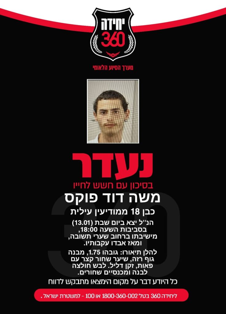 כל היודע דבר על מקום המצאו, מתבקש להודיע ליחידה 360 או למשטרת ישראל.
