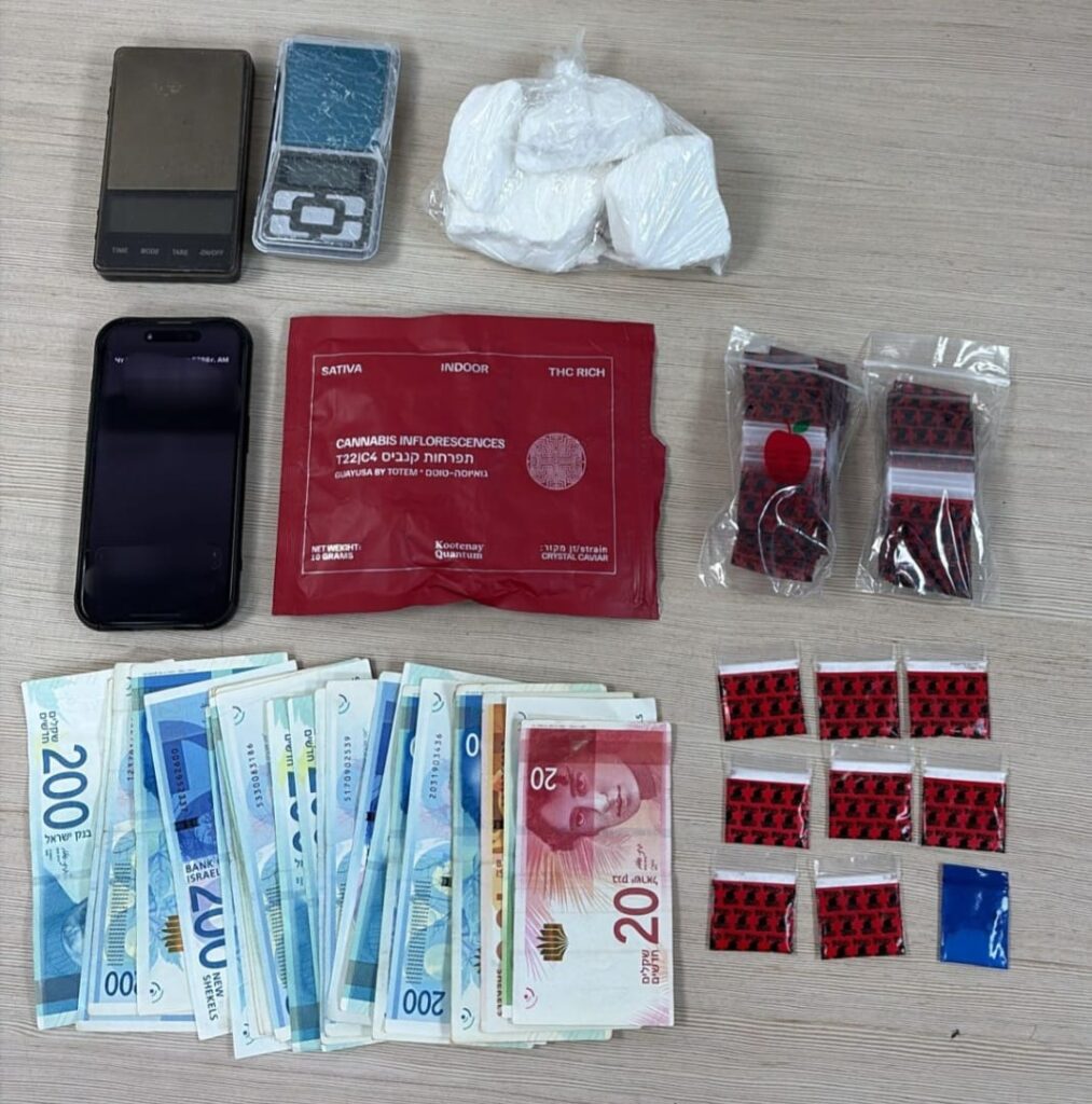 * 8 שקיות חלוקה עם חומר החשוד כסם מסוג דוקטור במשקל כולל של 10.2 גרם ברוטו.