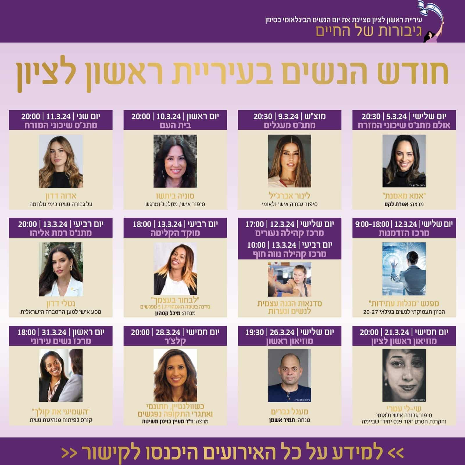 גם השנה, עיריית ראשון לציון תציין את יום האישה הבינלאומי שחל ב-8.3.24 במשך חודש שלם, והשנה – בסימן גבורת הנשים במלחמת "חרבות ברזל".