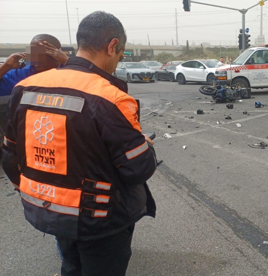 ראשון לציון: רוכב אופנוע כבן 50 נפצע קשה בתאונה עם רכב פרטי