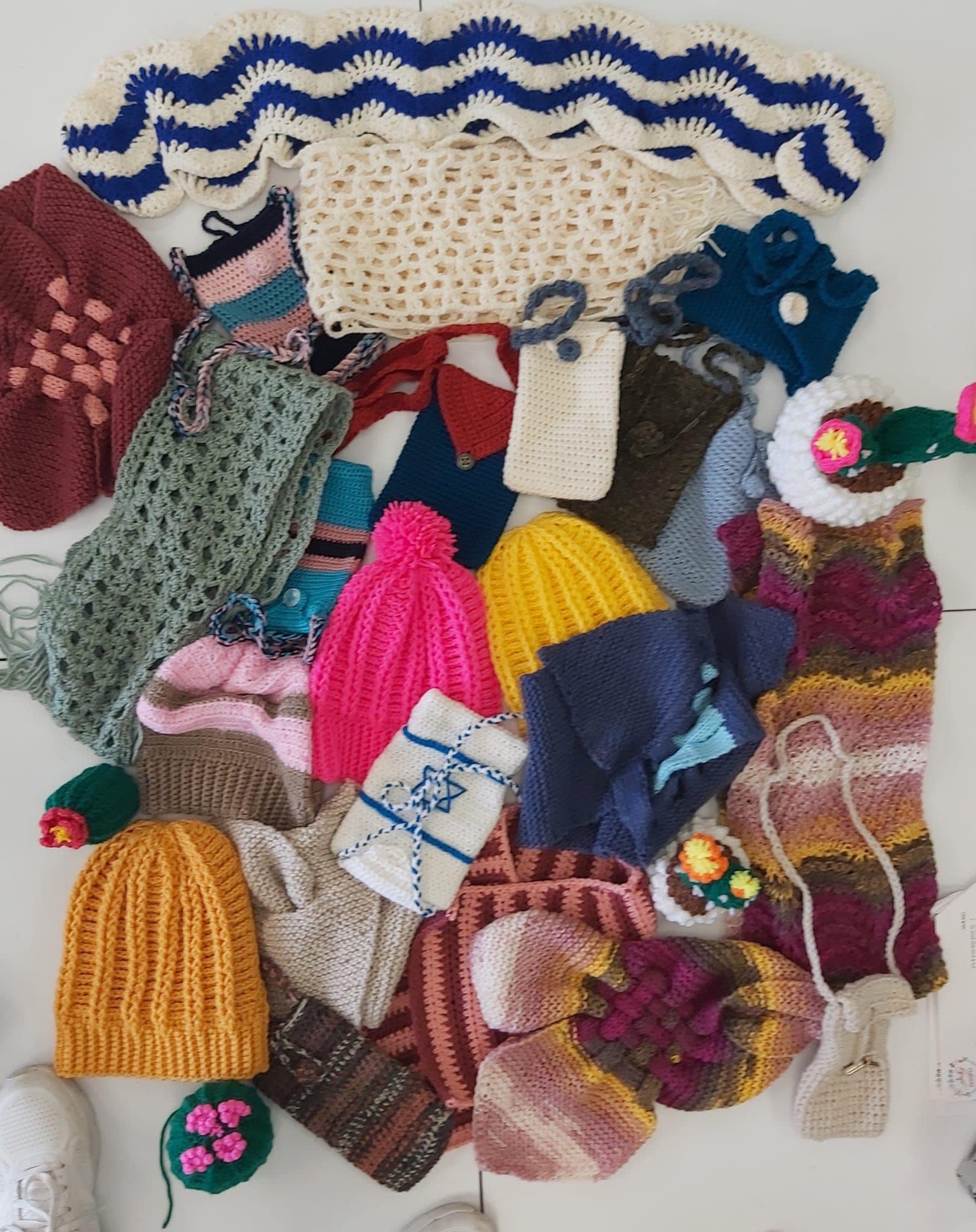 מאז תחילת המלחמה, סרגו הנשים בקבוצה בובות ובגדי חורף למשפחות שפונו מיישובי העוטף, כובעים לחיילים ועוד.