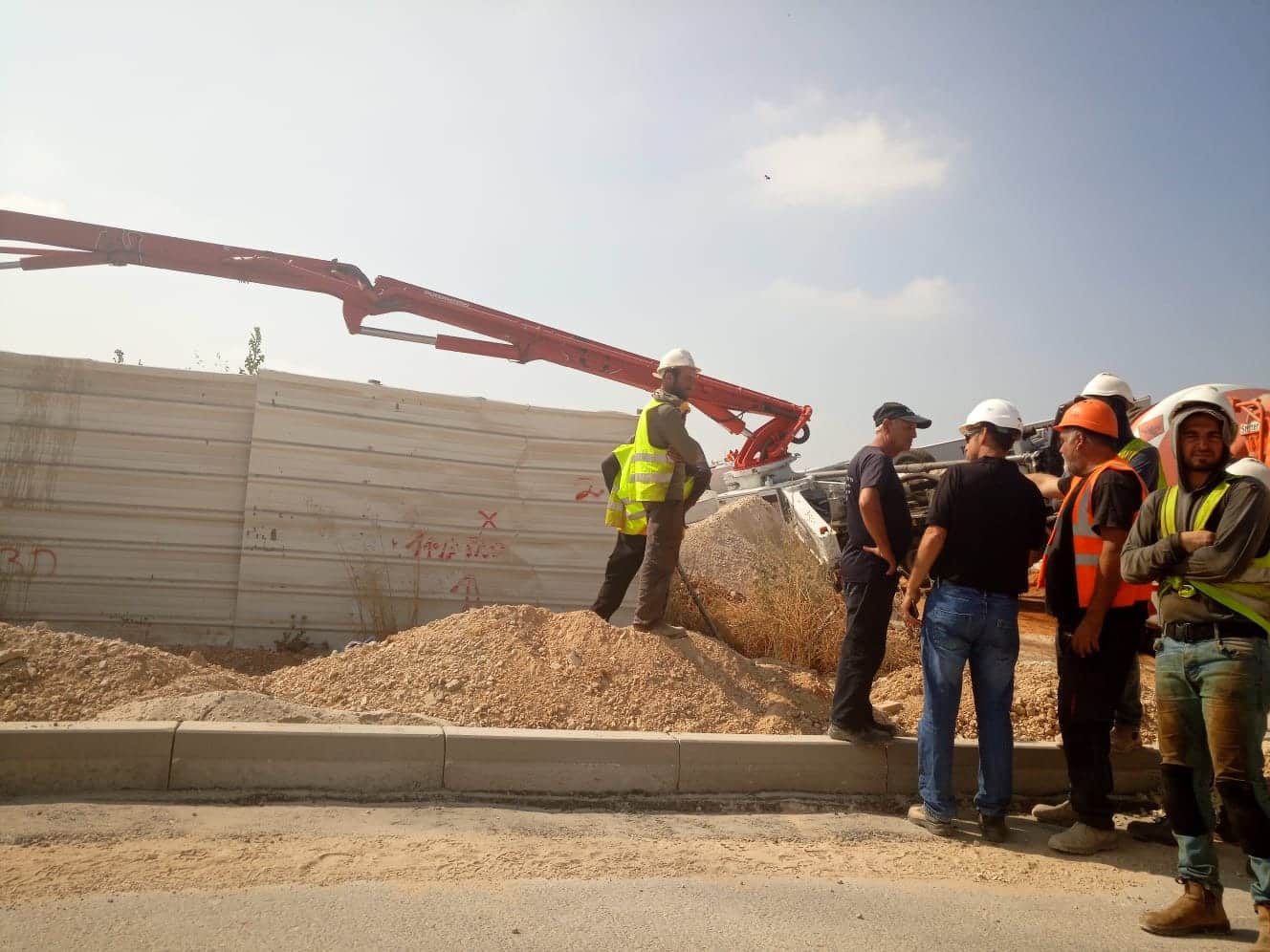 ראשוני: פועל נפגע מזרוע של משאית בטון – מצבו בינוני עד קשה