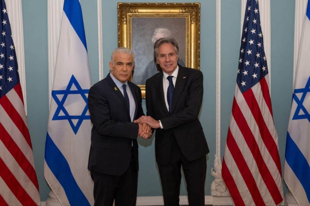 ראש האופוזיציה יאיר לפיד בפגישה עם אנתוני בלינקן: "לא ננוח עד שהחטופים ישובו הביתה"
