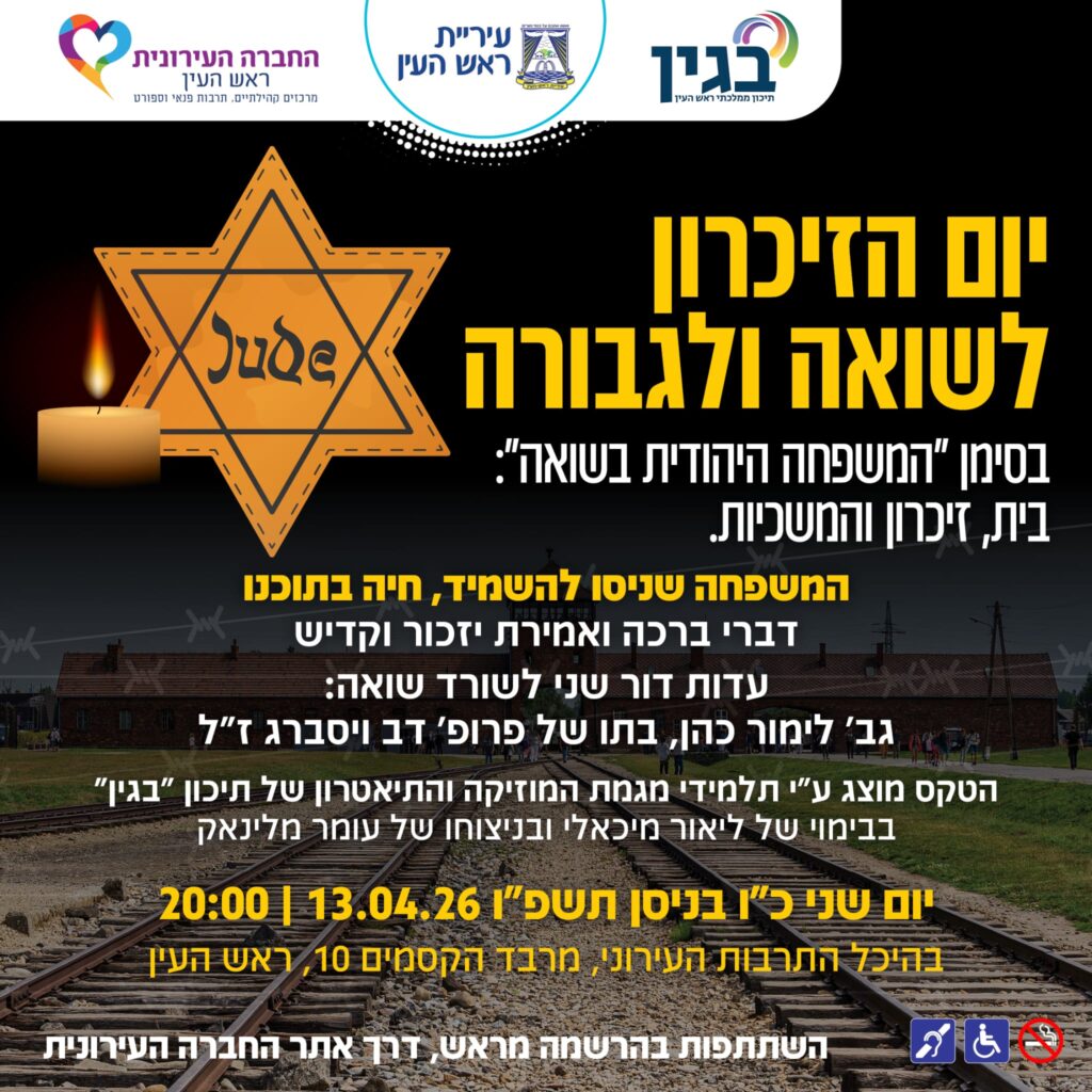 לקראת יום הזיכרון לשואה ולגבורה, נערכת העיר ראש העין לטקס העירוני המרכזי שיתקיים השנה בסימן "המשפחה היהודית בשואה: בית, זיכרון והמשכיות". האירוע יוקדש לזכרם של ששת המיליונים ולסיפורי הגבורה של השורדים, תוך התמקדות בכוחו המיוחד של הקשר המשפחתי שנותר איתן גם במקומות האפלים ביותר בהיסטוריה האנושית.