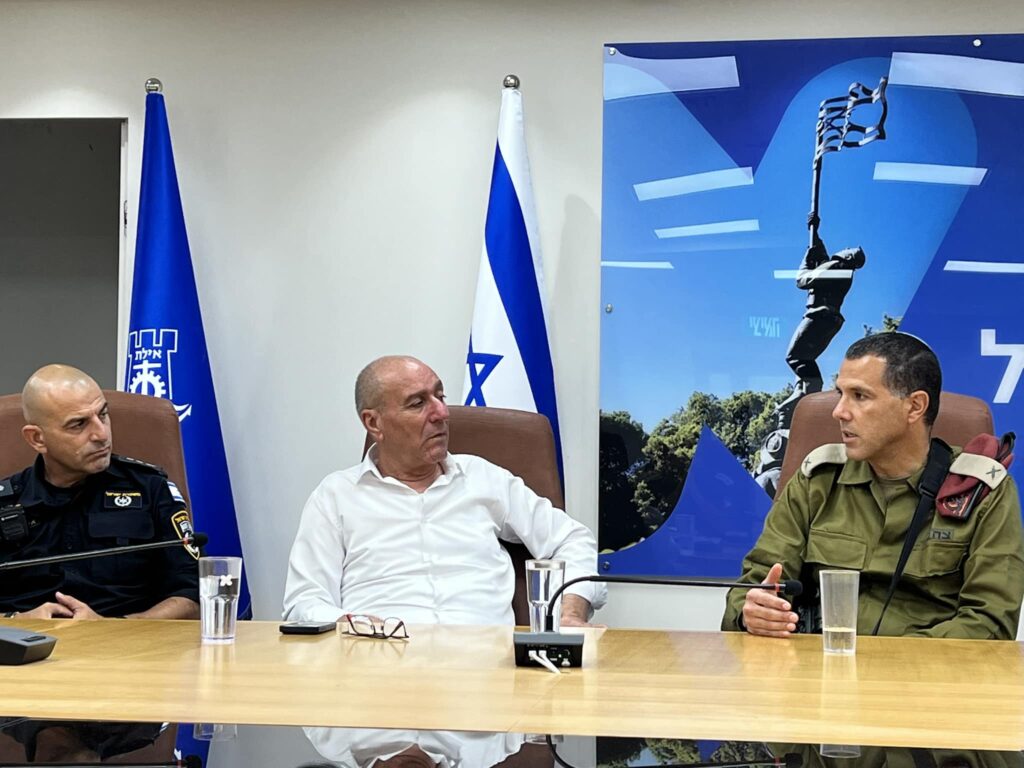 מפקד האוגדה המרחבית עוצבת אדום – תא״ל איתמר בן חיים עדכן על מעטפת הגנה רחבה במרחב ועל הערכות לכל תרחיש הן מבחינת הרחבת ההתקפה והן מבחינת ירי לאילת. מפקד משטרת מרחב אילת – נצ״מ אליהו שמול עדכן על נוכחות גבוהה של שוטרים במרחב הציבורי כולל בשדה התעופה רמון. גם כיתת הכוננות נמצאת בדריכות גבוהה.