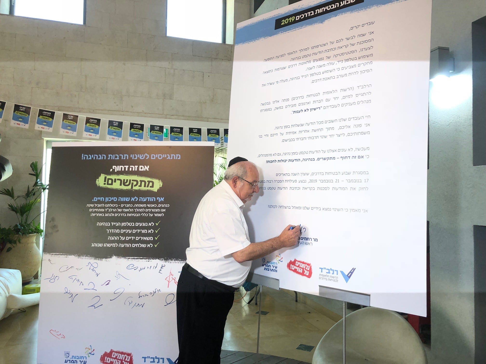 שבוע הבטיחות בדרכים נפתח היום בסימן מניעת היסח דעת בעת הנהיגה. ההורים והילדים מוזמנים היום ומחר אחרי הצהריים לפעילות בקניון רחובות בנושא. במטה העירוני לבטיחות בדרכים שבאגף הביטחון והבטיחות בעירייה הכינו מגוון פעילויות לשבוע הקרוב– במרחב הציבורי ובמערכת החינוך. הבוקר חתם ראש העיר, רחמים מלול, על האמנה במעמד בכירי העירייה.
