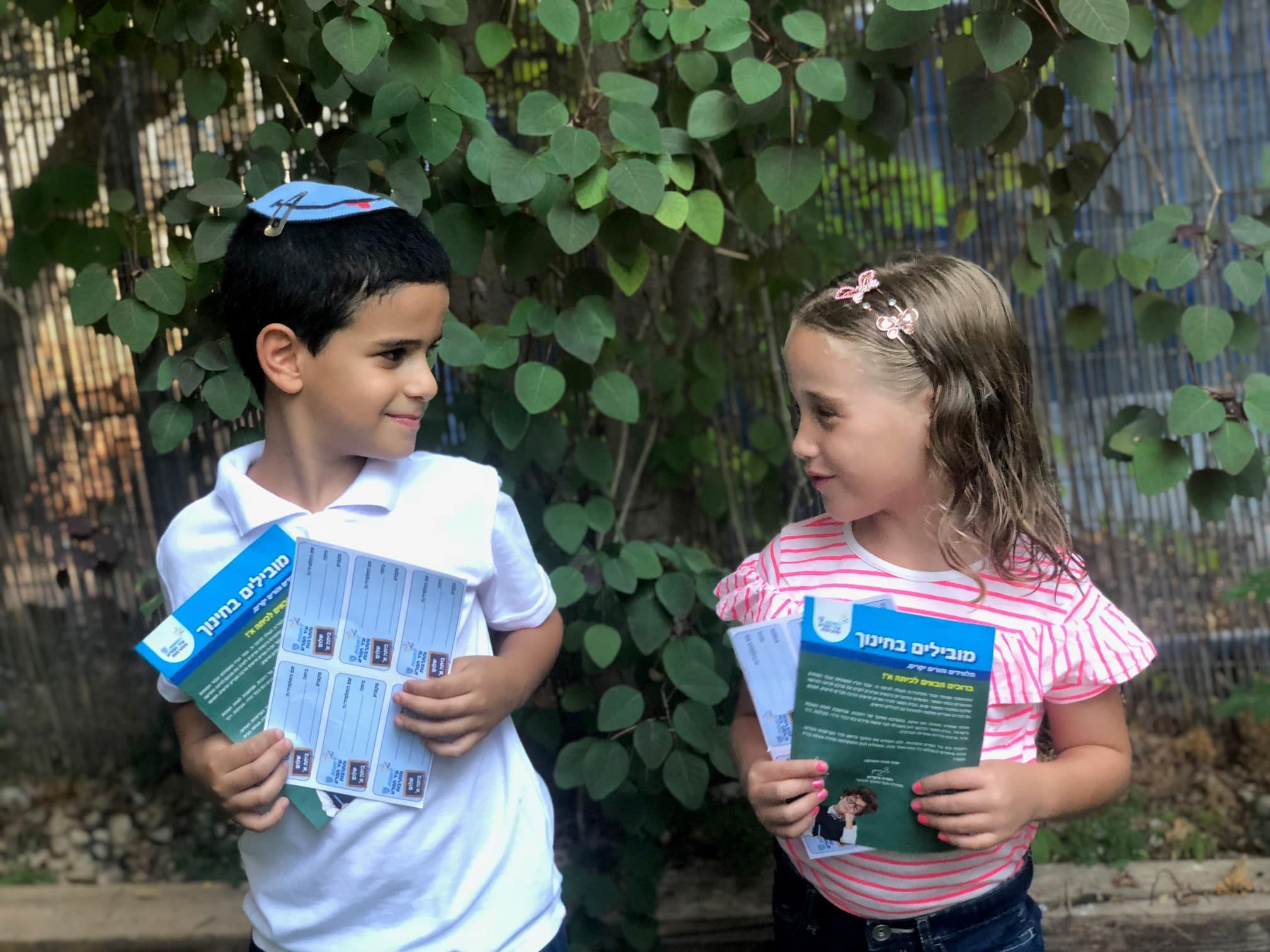 רגע לפני שנת הלימודים: ראש העיר וממלא מקומו שלחו מדבקות למחברות ולספרים אל תלמידי כתה א'