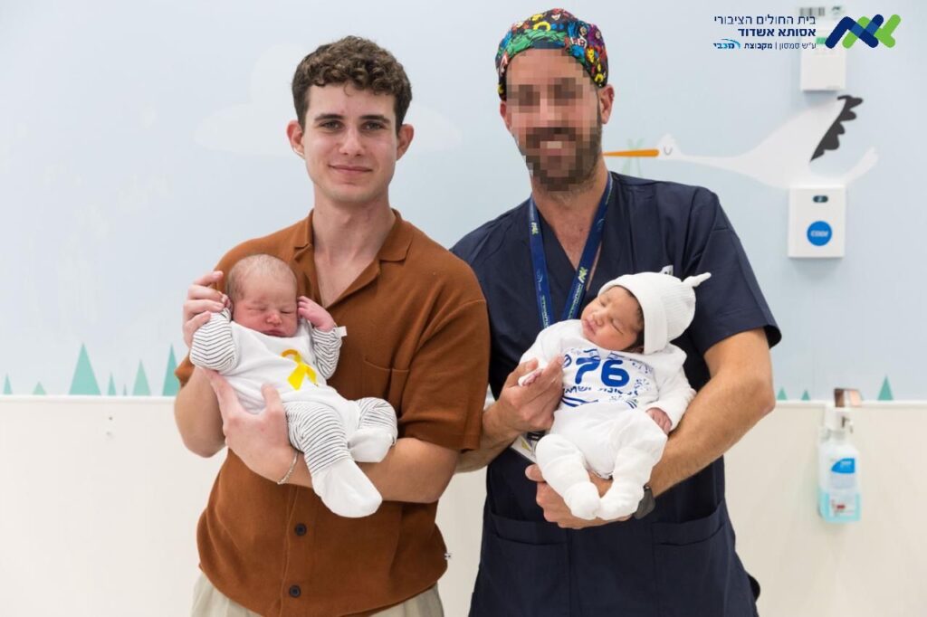 בית החולים הציבורי אסותא אשדוד: ערב יום העצמאות ה 76- הלוחם שנפצע אנושות והרופא שהציל את חייו אוחזים בתינוקות בני יומם ועליהם דגל המדינה וסמל הסרט הצהוב