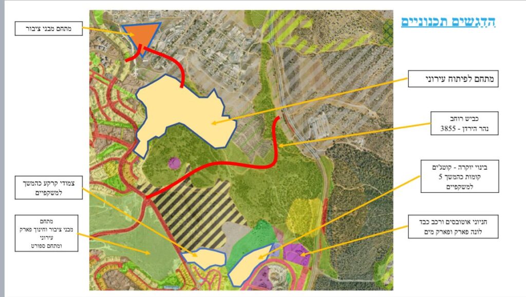 על פי הנתונים שהוצגו בדיון, התוכנית משתרעת על שטח של כ-1,530 דונם, במיקום שבין שכונת המשקפיים למושב זנוח. המתחם מהווה רצף תכנוני עירוני וצפוי להרחיב את החיבור בין שכונת המשקפיים לרמה א׳.