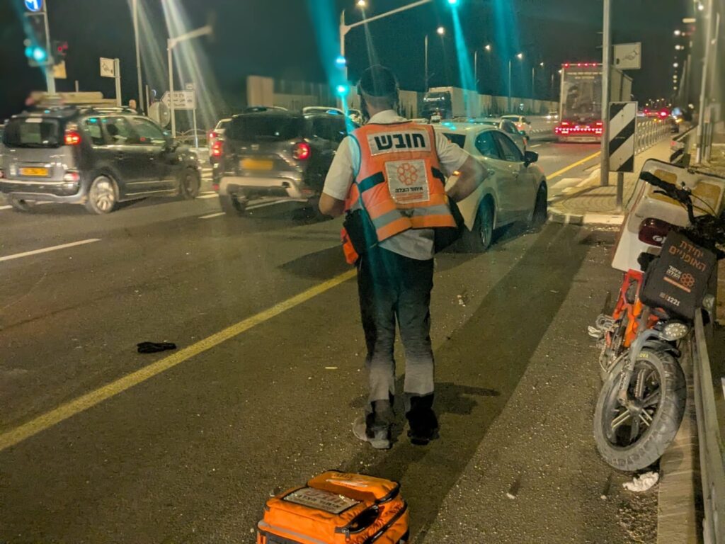 חובשים של איחוד הצלה, אברהם קליין ואמתי וידס, סיפרו: "מדובר ברוכב אופנוע בן 40 שאותר פצוע לאחר שהיה מעורב בתאונה עם האופנוע עליו רכב. על פי עדותו, הוא נפגע מרכב חולף. הענקנו לו טיפול רפואי ראשוני בזירה ופינינו אותו לבית החולים במצב בינוני".