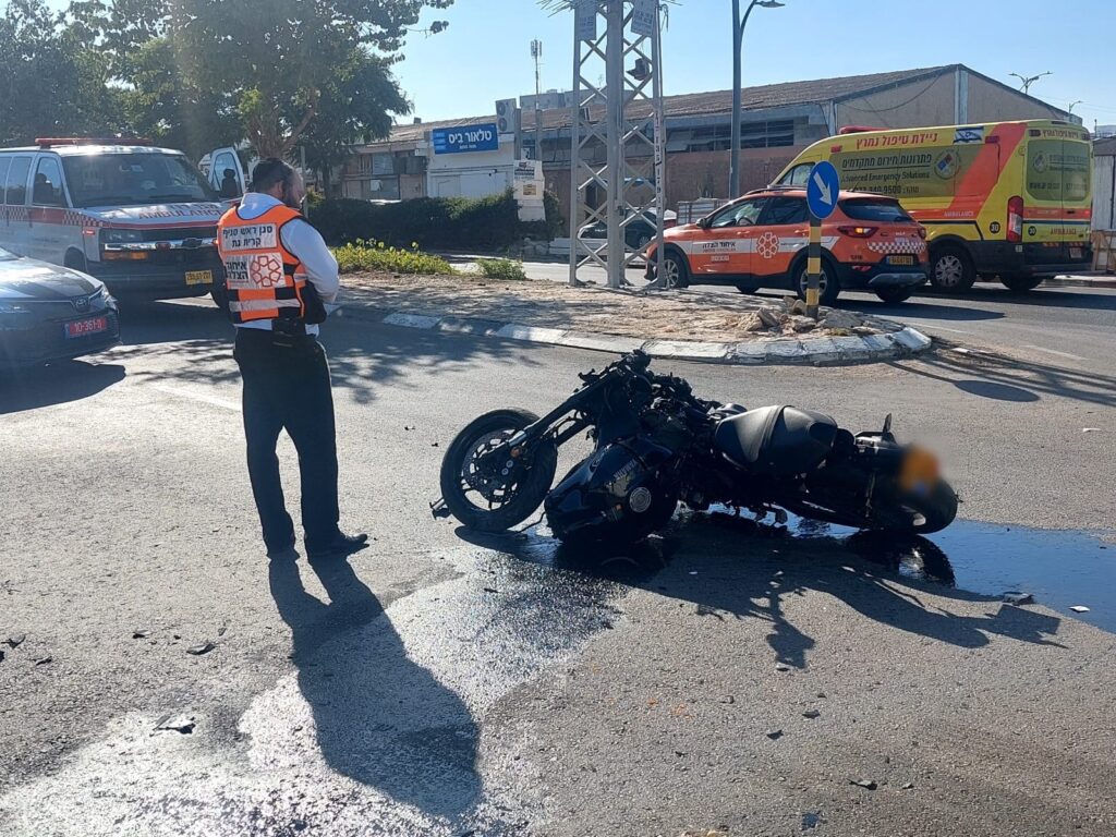 בשעה 16:00 התקבל דיווח במוקד 101 של מד"א במרחב דן על רוכב אופנוע שנפגע מרכב ברחוב עוזיאל ברמת גן. חובשים ופראמדיקים של מד"א מעניקים טיפול רפואי ומפנים לבי"ח שיבא בתל השומר גבר בן 44, במצב בינוני עם חבלה בגפיים.