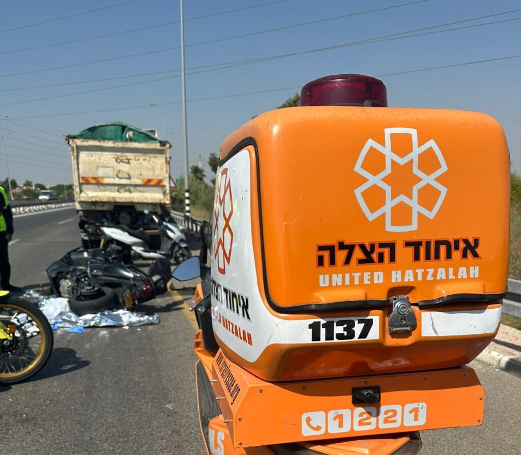 "מדובר בתאונה עם מעורבות אופנוע ומשאית. הענקנו סיוע ראשוני בזירת התאונה לרוכב האופנוע שנפצע באורח בינוני. לאחר מכן הוא פונה לבית החולים שיבא-תל השומר כשהוא סובל מחבלות ופציעות בגפיים".