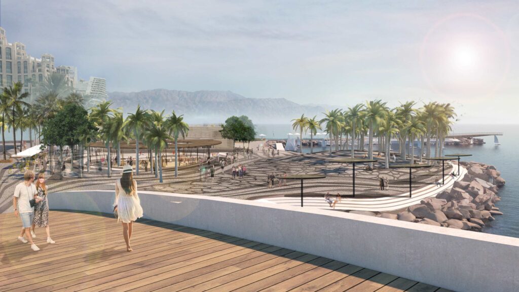 במסגרת העבודות שהחלו בימים אלה ויימשכו כ – 20 חודשים, יהפוך השטח הממוקם בין מועדון השיט לבין גשר המרינה למרחב ציבורי פתוח, מארח, איכותי ונגיש, הכולל פינות ישיבה מגוונות ומוצלות על קו המים, סככת הצללה ענקית סביב מתחם משחקי ילדים, צמחיה ועצי צל ודקל וגם רחבת פעילות ומתזים.