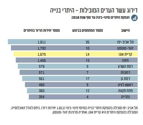 רחובות בדירוג 10 הערים המובילות בהוצאת היתרי בנייה לפרויקטי פינוי-בינוי