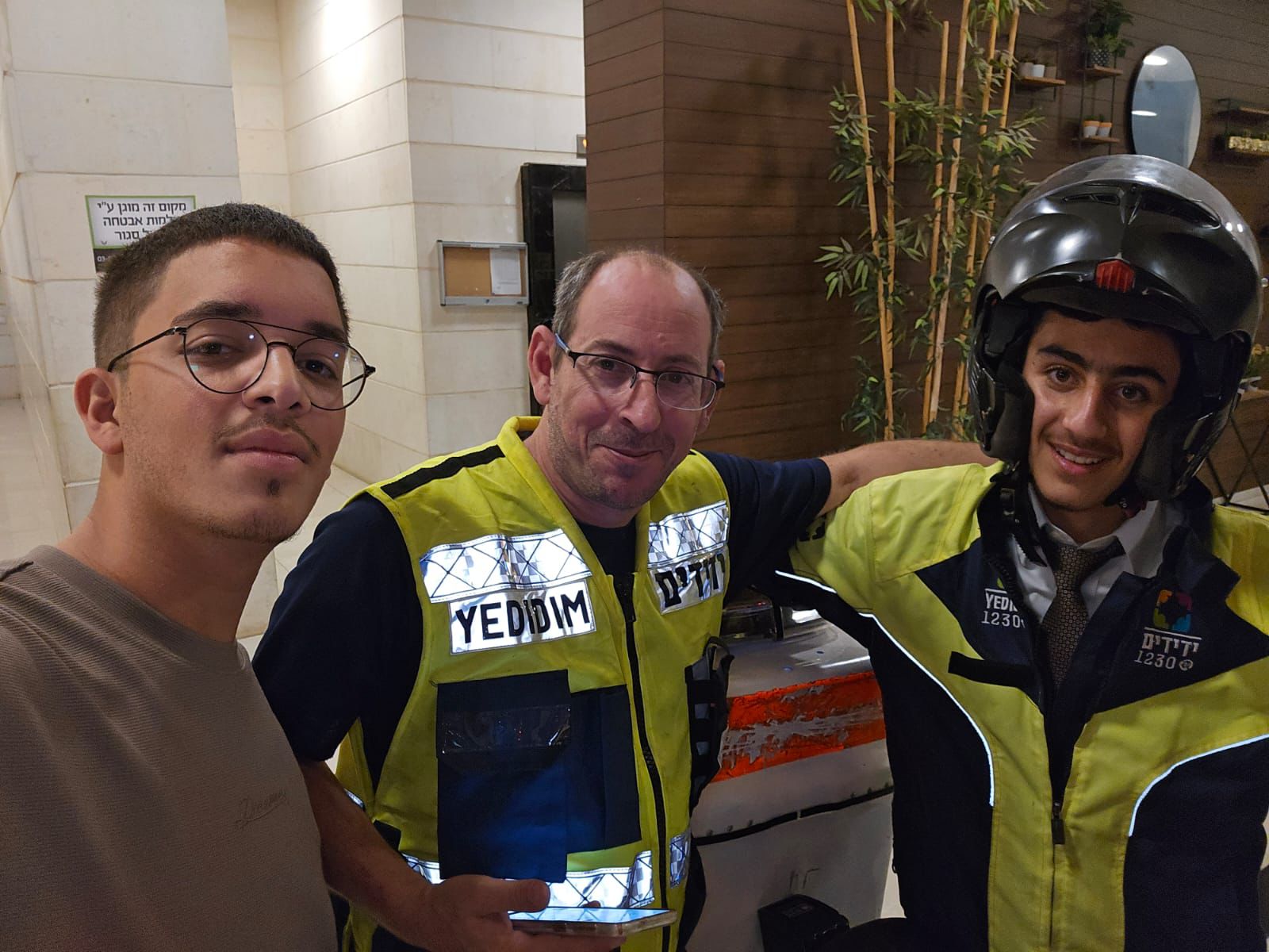 איתן שץ, עומר מעיין ואליהו בוחניק, מתנדבי הסניף, נענו לקריאה והגיעו במהירות למקום. בעדינות ובסבלנות רבה, עמלו המתנדבים עד לחילוץ הטבעת מן האצבע בשלום וללא פגיעה בגוף.